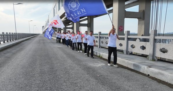 连云港市水利规划设计院的校友们满怀深情与敬意,精心组织校旗传递活动。校友们挥舞校旗,留下了一张朝气蓬勃的合影,这正是一代代河海学子在此辛勤付出、贡献才智的生动见证。