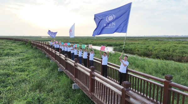 在连云港徐圩新区的云湖畔,面对眼前这泓由校友亲手参与描绘的碧水,满载着身为河海人的无限自豪,校友们挥舞校旗,为母校的百十荣光献上最热烈的礼赞。