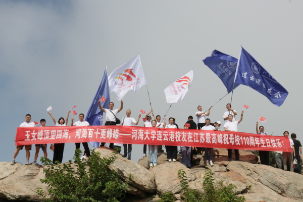 屹立于江苏之巅的玉女峰,校友们从云端为母校送上的最诚挚祝福:百十华诞,生日快乐!校友们俯瞰着山海港城的壮丽画卷,心中豪情奔涌。回首这片热土的建设成就,无不凝聚着一代代河海人的智慧与汗水!自豪与骄傲在胸中激荡,千言万语汇成峰顶的激情欢呼——“玉女峰顶望四海,河海百十更峥嵘!”