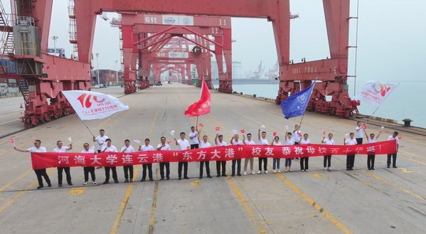 河海学子是连云港港口建设当之无愧的主力军。来自连云港港口集团的校友们齐聚欧亚大陆桥东起点,让校旗在这片他们倾注过智慧与汗水的热土上高高飘扬,祝愿母校生日快乐,基业长青。