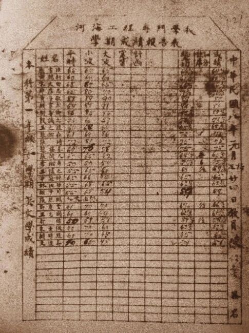 张闻天的国文、英文成绩单