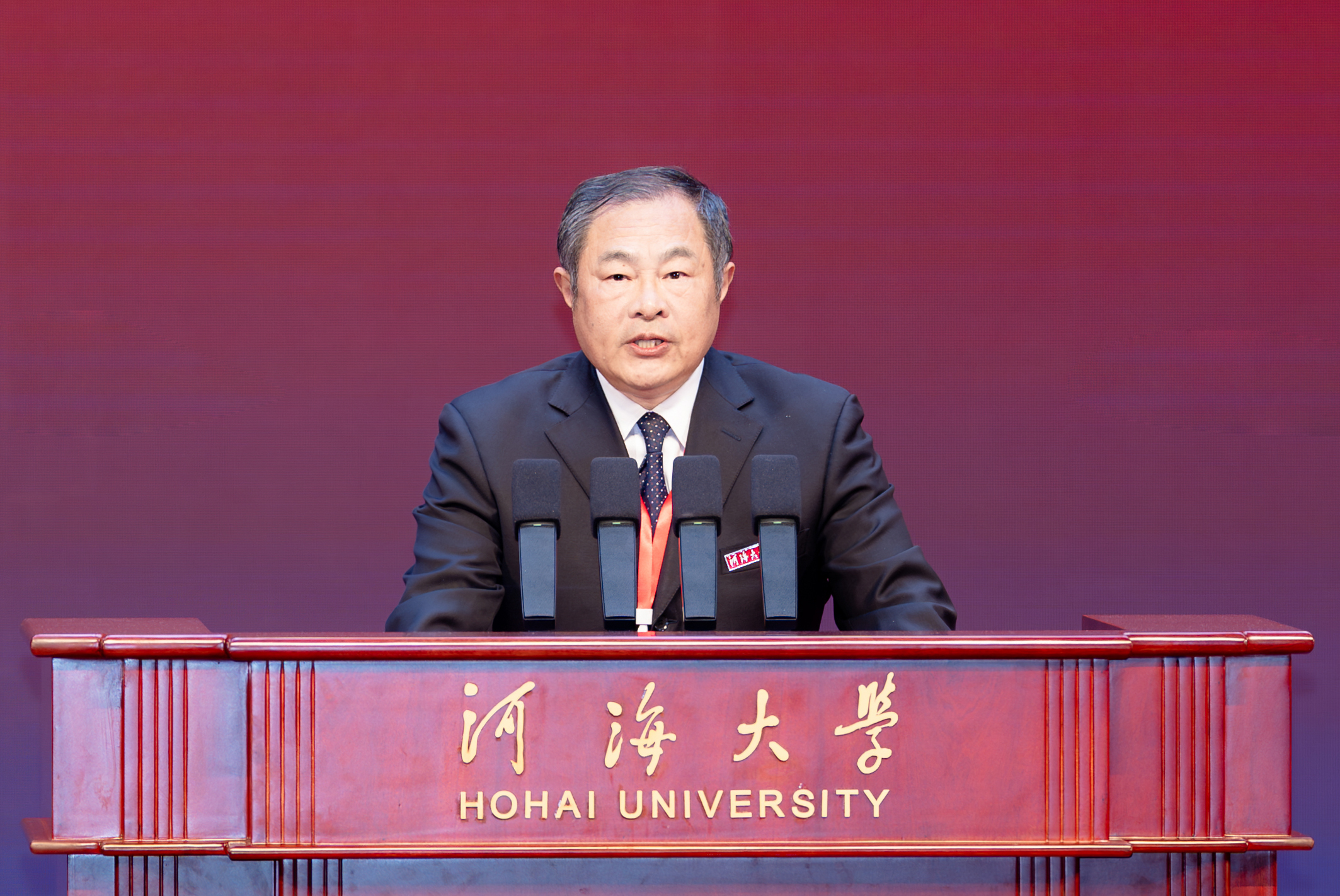 熊四皓代表教育部向河海大学全体师生员工和广大校友致以热烈祝贺和诚挚问候。他指出,河海大学是中国第一所培养水利人才的高等学府,先后为国家培养了30余万名优秀人才。学校主动服务国家“江河战略”、“双碳”战略,以“水”为特色的一流学科建设取得积极成效,产生了一系列标志性成果。立足新起点,希望河海大学坚持社会主义办学方向,坚定不移落实立德树人根本任务,努力培养更多担当民族复兴大任的时代新人;坚持改革创新,全面提升人才自主培养质量,培养更多拔尖创新人才和国家战略急需人才;加强有组织科研,更好服务国家战略和区域经济社会发展,为保障国家水安全、参与全球水治理贡献更多“河海方案”。